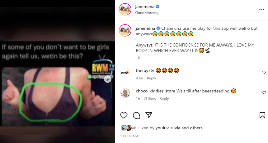 Janemena took to her Instagram to note the people who were making jokes about her in the media.