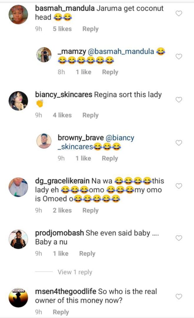 “Regina will be thinking of how to get jaruma products, so she will use another page and order, she no fit burst. Chai Jaruma I dey wonder y be say when person won brings down na dat time u dey cash out pass.”