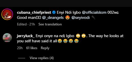 Some internet users took offence at the statement in the comment section, and Jerry was among those who strongly disagreed with Cubana Chief Priest.