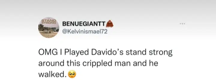 “OMG! I played Davido’s stand strong around a crippled man and he walked”.
