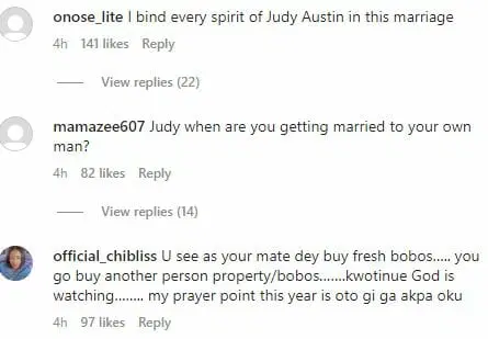 Angry netizens however stormed Judy Austin’s comments section, warning her to stay off the marriage.
