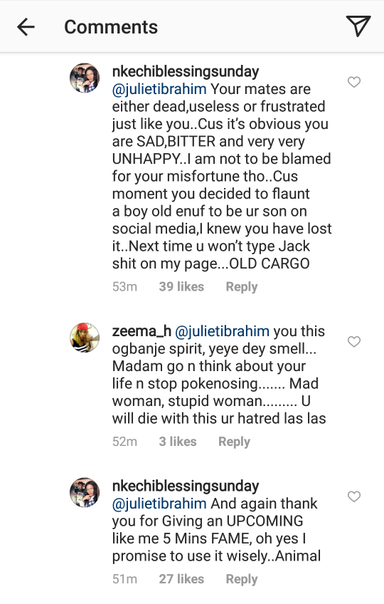 Juliet Ibrahim and Up and Coming Actress Nkechi Blessing Rip Each Other Apart Online [See Reactions]