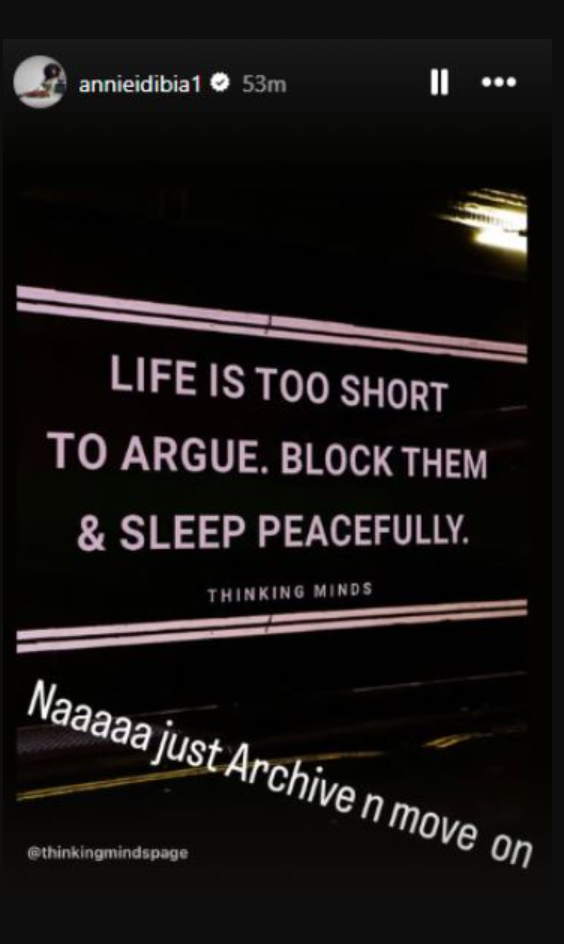 Posting on her Instagram story, she wrote: “Naa just archive and move on,” a statement many believe reflects her current mindset.