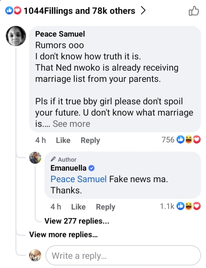 The fan who seems to have heard about the rumours advised her about not destroying her future, Emmanuella responded by stating that the news is fake.