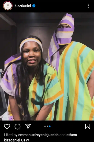 Kizz Daniel recently posted images of himself and his wife posing in matching attire on his Instagram page, which elicited varied reactions from fans.