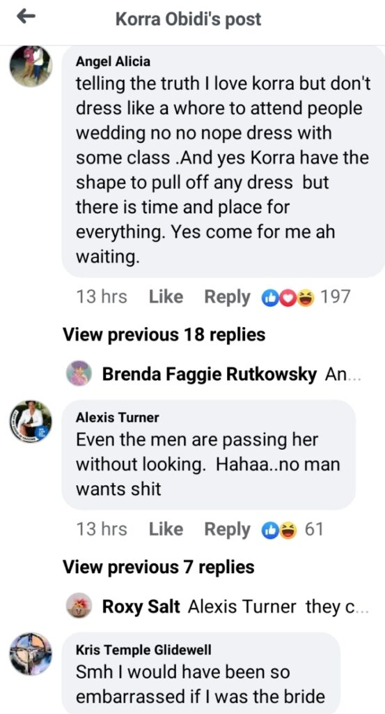 Dancer Korra Obidi recently came under attack by some of her social media followers over her choice of outfit at a wedding she attended in United States.