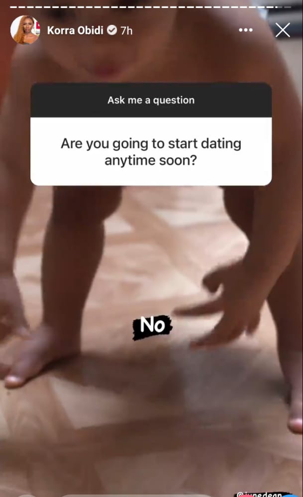 However, days after making this disclosure, the mom of two has seemingly made a U-turn. In a question and answer session, Korra was asked whether she would start dating soon and she gave NO as an answer.