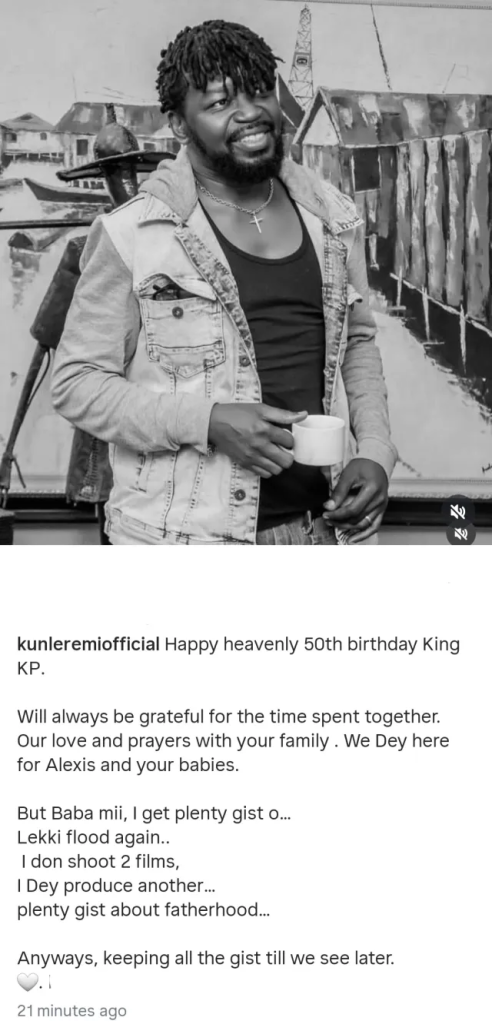 - Actor Kunle Remi honored filmmaker Kayode Peters with a heartfelt message.