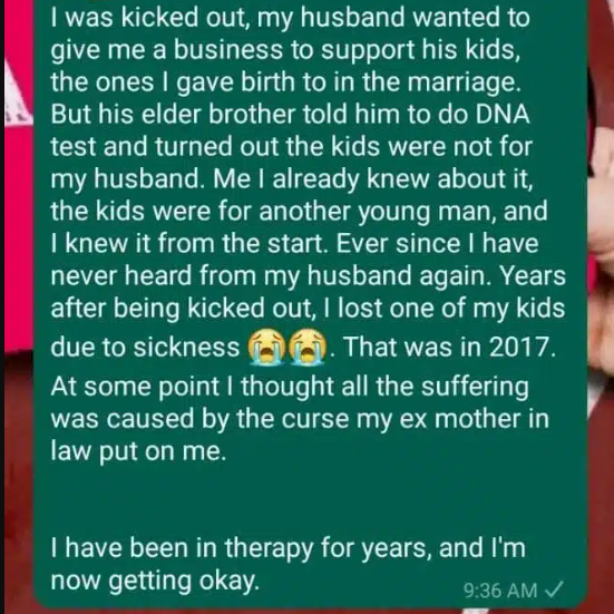 At some point I thought all the suffering was caused by the curse my ex mother in law put on me.