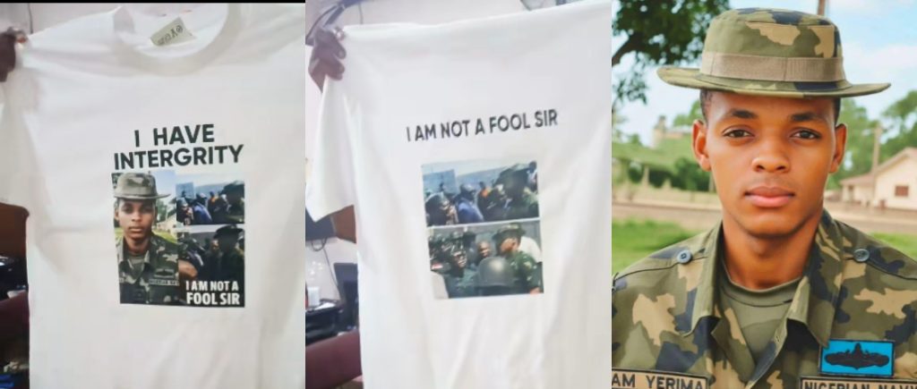 Her video features a white round-neck T-shirt printed with images of both the minister and the naval officer. The shirt also carries the bold inscription: “I have integrity. I’m not a fool, sir.” The clip has since gained widespread traction online.