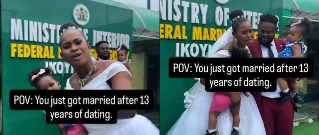 A Nigerian lady could not contain her joy as her partner finally made their union official after 13 years of being together and raising two children.
