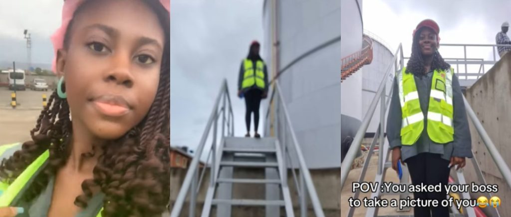 A lady has sparked laughter online after sharing the less-than-flattering photos her boss took of her when she asked him to snap some pictures at work.