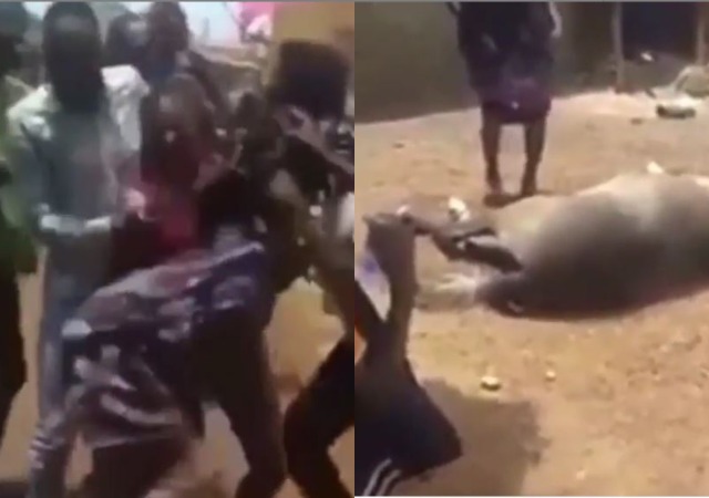 A Nigerian lady said to be a slay queen has been caught red-handed and stripped naked for faking a money transfer alert.