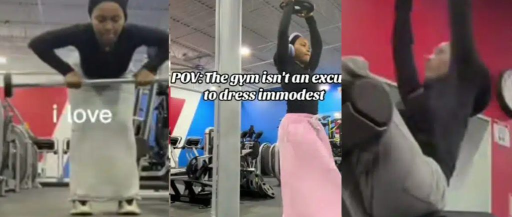 A lady’s gym outfit has sparked attention online after she explained her reason for dressing modestly.