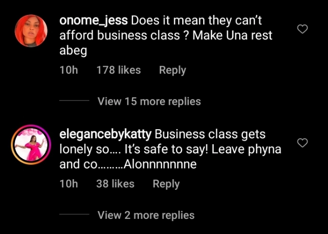 Majority of them were spotted at the economy class section of the flight, while Beauty, alongside Chi Chi chose to pay more money to upgrade to business class.