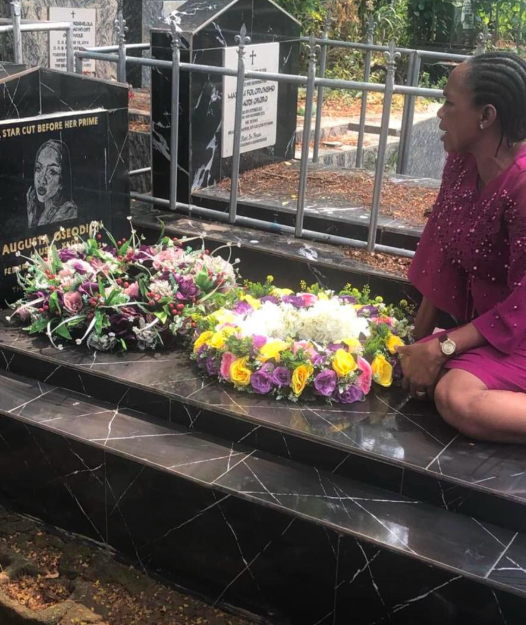 Okonye shared images of her visit to the grave site on social media, expressing her sentiments.