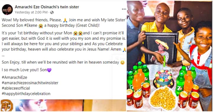 The late musician’s twin sister, Amarachi Eze, took to her Facebook page to celebrate her nephew.