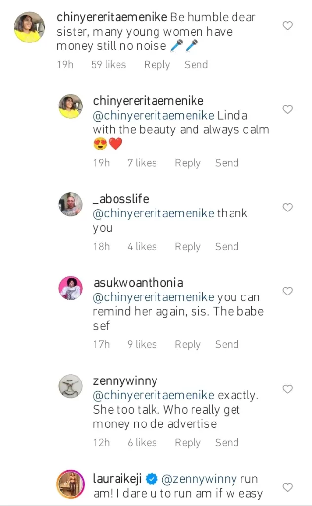zennywinny: Exactly, she too talk. Who really get money no dey advertise.