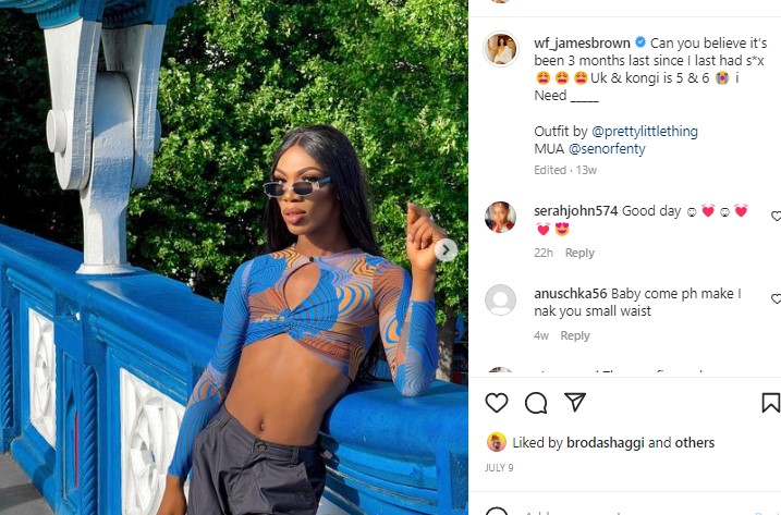 He wrote in his post, “Can you believe it’s been 3 months last since I last had s*x 😩😩😩Uk & kongi is 5 & 6 😭 i Need _”