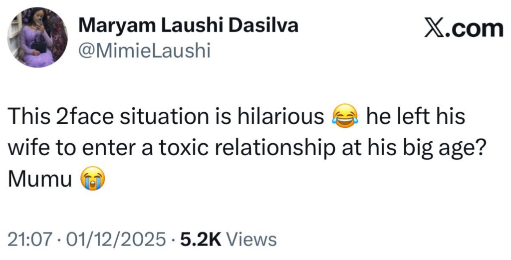 Reacting to these shocking revelations, Mariam DaSilva took to social media and directed harsh words toward 2Baba, suggesting he deserves no sympathy: