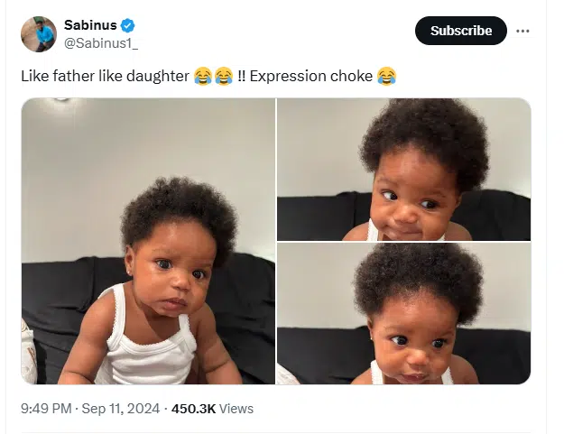 - Famous comedian Sabinus, also known as Mr. Funny, has shared first photos of his daughter, who he has kept the identity of.