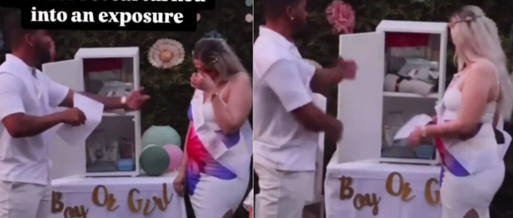 A man shocked his wife and in-laws at their child’s gender reveal party after presenting a DNA test result.