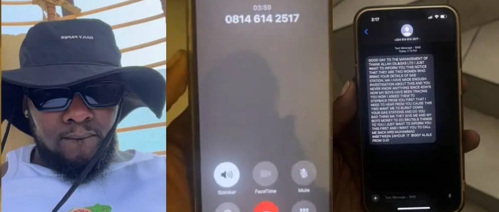 “I ordered them to step back because I wanted to hear from you first. These two women have paid us to burn down your gas station and harm you. Call me within 24 hours. It’s Biggy Alale from Ojo.”