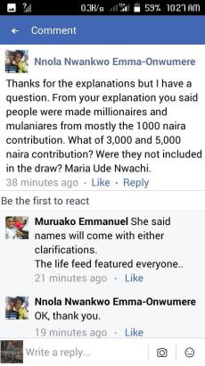 ON NOT WINNING: This is just like contribution top mop up capital to help ourselves up; derived from anyuko mmamiri onu, ya agbaa ufufu. People were made millionaires and mulaniares yesterday from your mostly 1,000 naira contributions. No one contributed one million but many emerged millionaires. If it was not your luck this time, it could be next time. Don’t give haters a bed to relax in and attack the platform and their hate targets. Be graceful. A win for your brethren is a win for you.