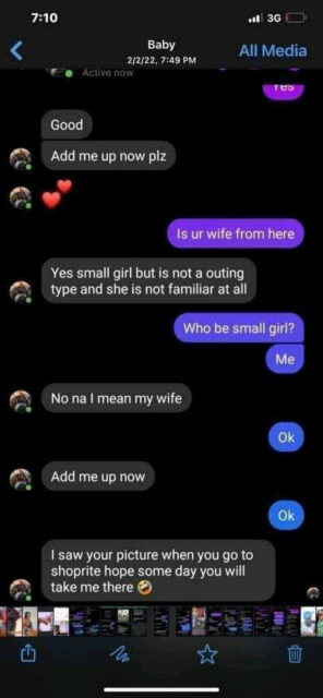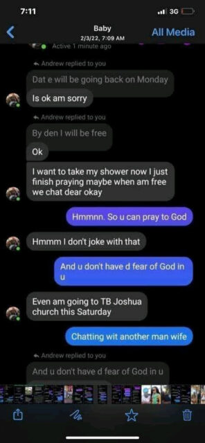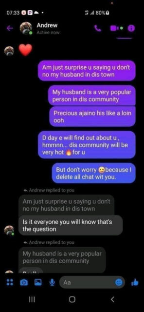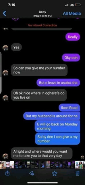 A social media user Victor Kelechi Onyendi who made the claim said the lady the man was chatting with is wife of Hon. Precious Ajaino, the state’s Director General of Direct Labour and also the former local government chairman of Ethiope West L.G.A.