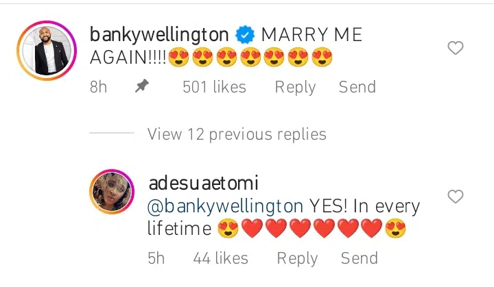 Award-winning Nigerian singer, actor and politician Bankole Wellington, popularly known as Banky W, has re-proposed to his wife, Adesua Etomi.