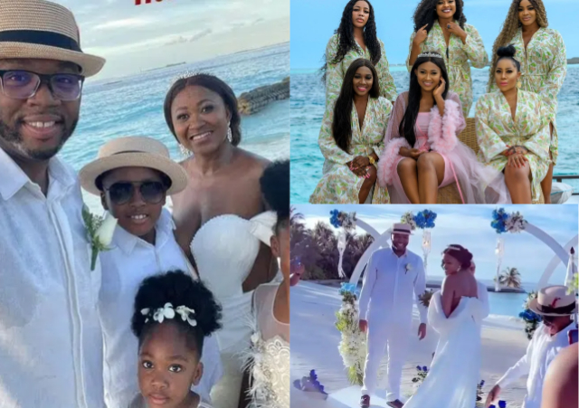 The pair, who have 3 children, had their vow renewal on a scenic beach in the Maldives.