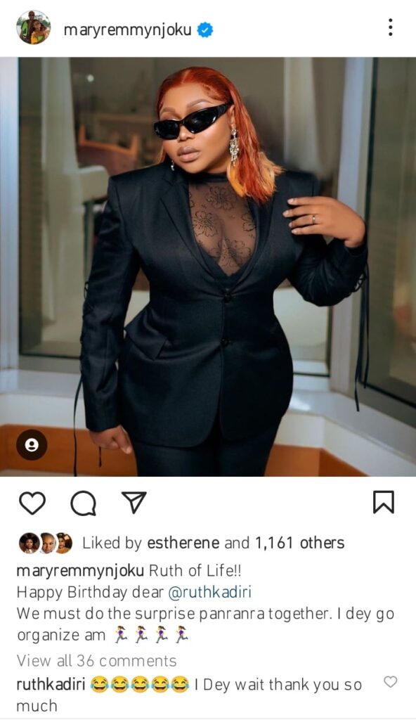 - While celebrating Ruth Kadiri, Mary Njoku revealed that she is organizing a birthday surprise for her.