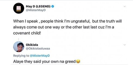 May D has also shared his experience with the defunct Psquare music group, just after Cynthia Morgan narrated how she lost everything she made from music to Jude Okoye due to the contract she signed with his record label ‘Northside Music Group’.