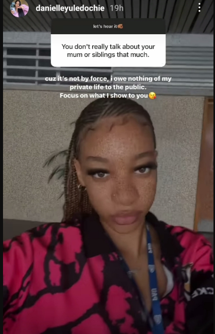 Unfazed, Danielle responded confidently, claiming that spilling family secrets online isn’t mandatory and emphasising that her private life isn’t a public spectacle.