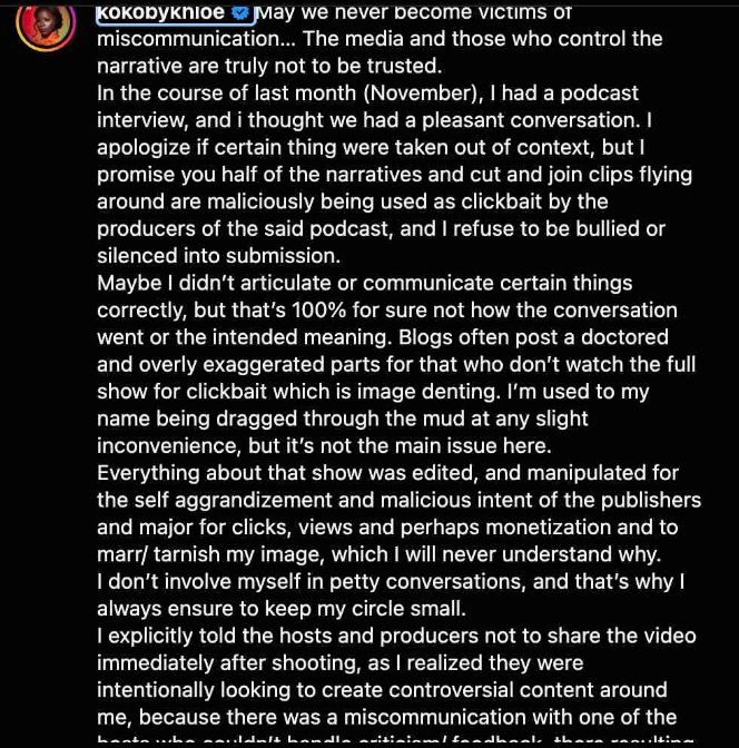In the course of last month (November), I had a podcast interview, and i thought we had a pleasant conversation. I apologize if certain thing were taken out of context, but I promise you half of the narratives and cut and join clips flying around are maliciously being used as clickbait by the producers of the said podcast, and I refuse to be bullied or silenced into submission.