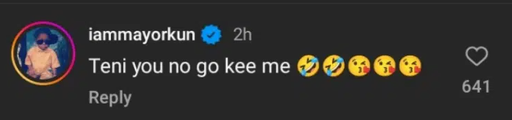In response to Teni’s light-hearted marriage proposal, Mayorkun humorously replied, “Teni you no kill me,”
