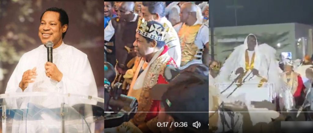 Videos shared online showed Pastor Chris making a spectacular entrance at his party, donning a crown and regal robe while arriving in a chariot.