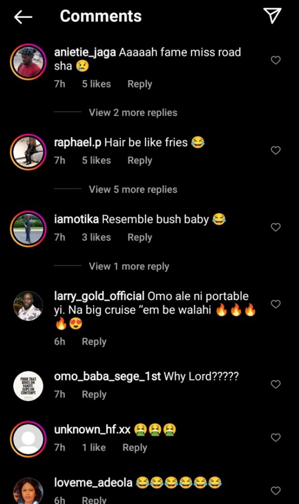 Several fans of the Zazu crooner have taken to his comment section to share their thoughts about his hairstyle.