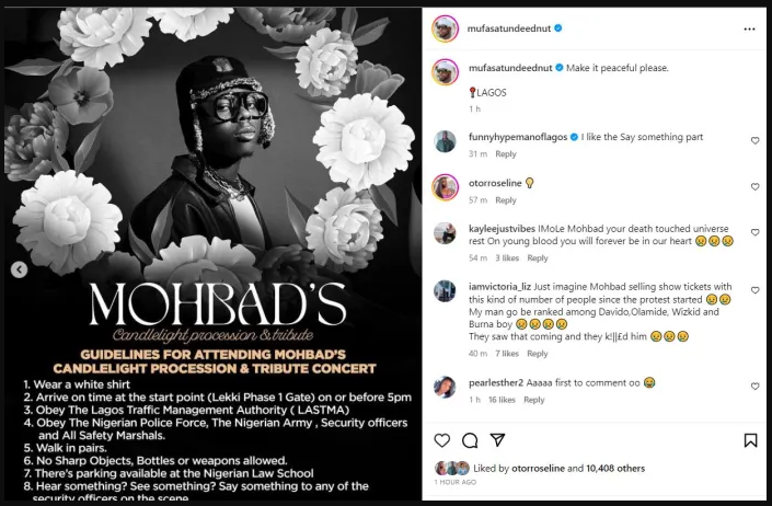 In a recent social media post, the family of late Nigerian artist Mohbad posted eight instructions for joining today’s candlelight procession in Lekki Phase 1.