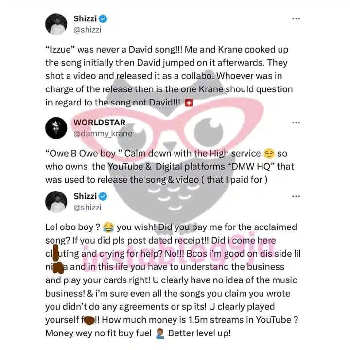 Remember that Shizzi, who produced the song “Izzue,” became embroiled in the conflict when a fan on X asked him what he thought of the fight between artists Davido and Dammy Krane?