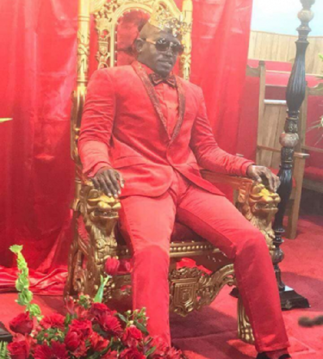 The unidentified man was dressed in red attire and a crown placed on his head as he was positioned on a ‘throne’ for the ceremony which saw his family and friends in attendance.