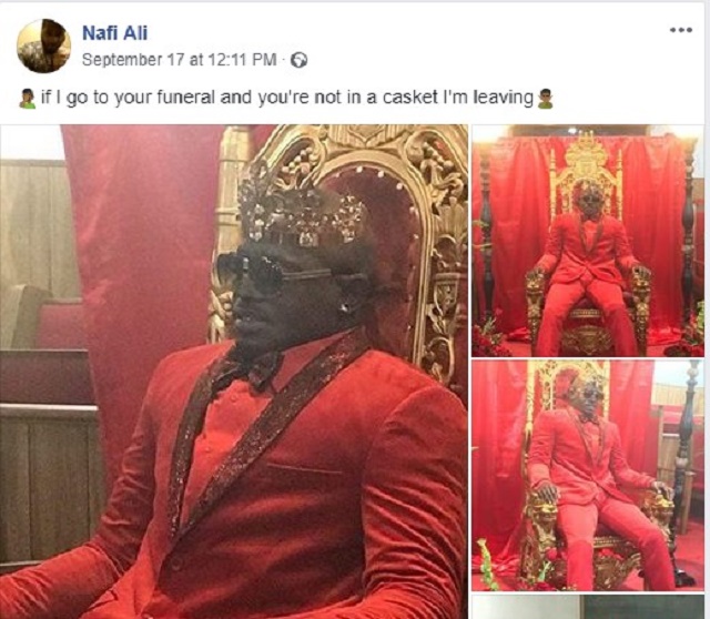 The pictures which have gone viral online was shared by Nafi Ali who wrote; if I go to your funeral and you’re not in a casket I’m leaving.