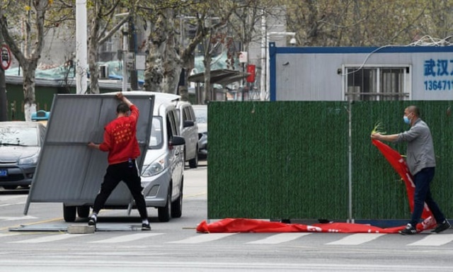 According to the UK Guardian, small groups of residents in the central Chinese city were seen on Monday leaving their residential compounds, going to grocery stores and walking along the streets for the first time in weeks.