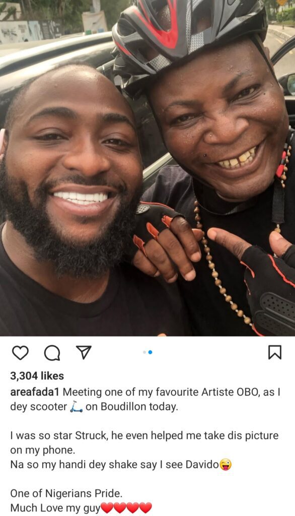 “Meeting one of my favorite Artiste OBO, as I dey scooter on Boudillon today.