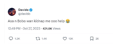 In a sizzling new online tweet, Davido spilled the beans with a pinch of humor, playfully suggesting that his manager Asa Asika and lawyer Bobo Fred Ajudua are hankering to “kidnap” him.