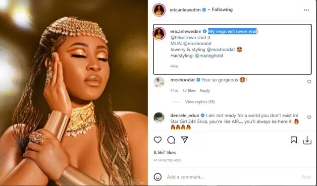 reality TV star, Erica Nlewedim has boasted that her reign will never end.