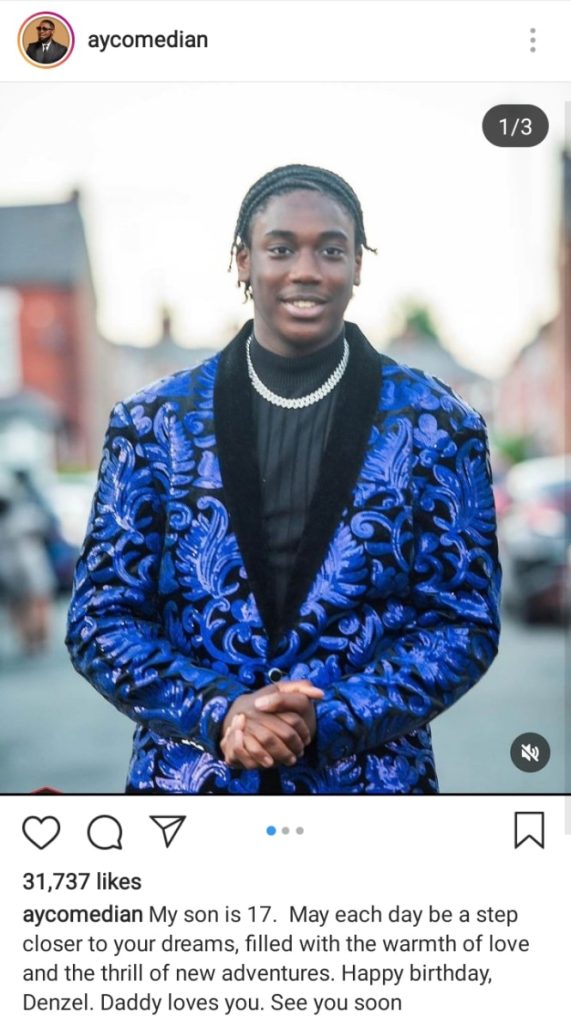 - Nigerian actor and comedian, AY Makun, is causing speculations as he celebrates his 17th birthday with speculations surrounding his son.