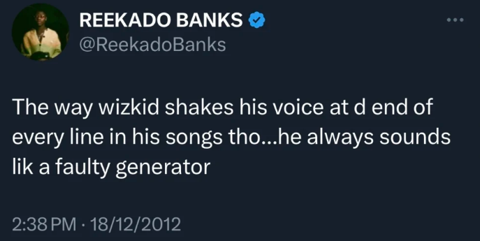 Reekado Banks claimed in a 2012 tweet that Wizkid causes his voice to shake at the end of his songs.