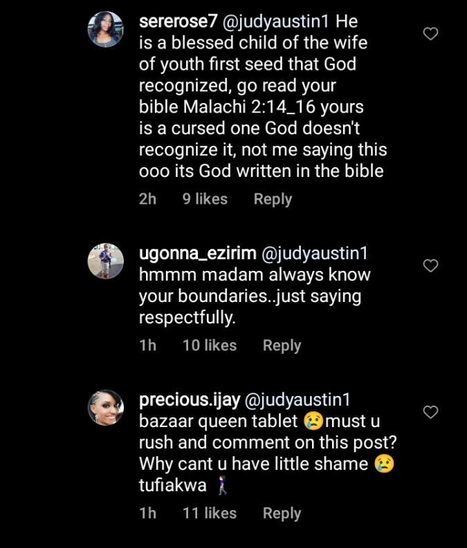 Judy Austin, second wife of Actor Yul Edochie, is currently facing severe backlash from trolls over her birthday message to Co-wife, May Edochie’s son, Zane Edochie.