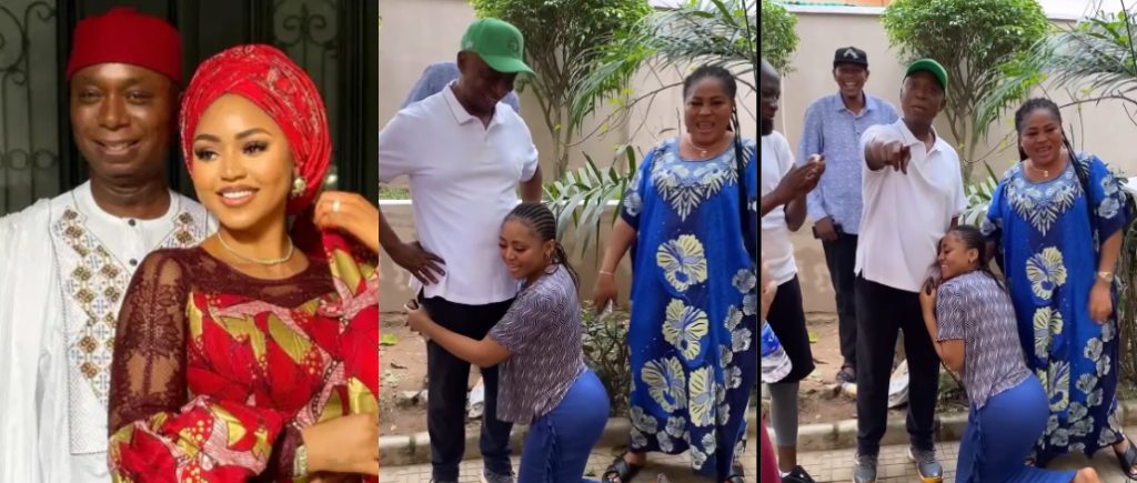 Regina, looking embarrassed, quickly knelt down to apologise and promised to do better. She, however, playfully countered his statement, saying, “No o, it’s a lie o. You’re my husband and my everything,” before hugging him.